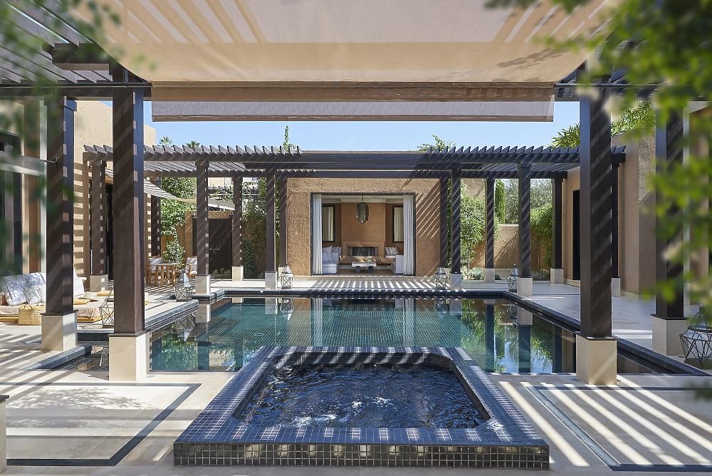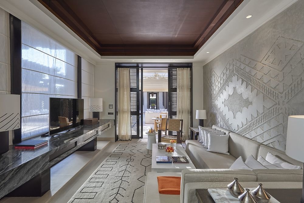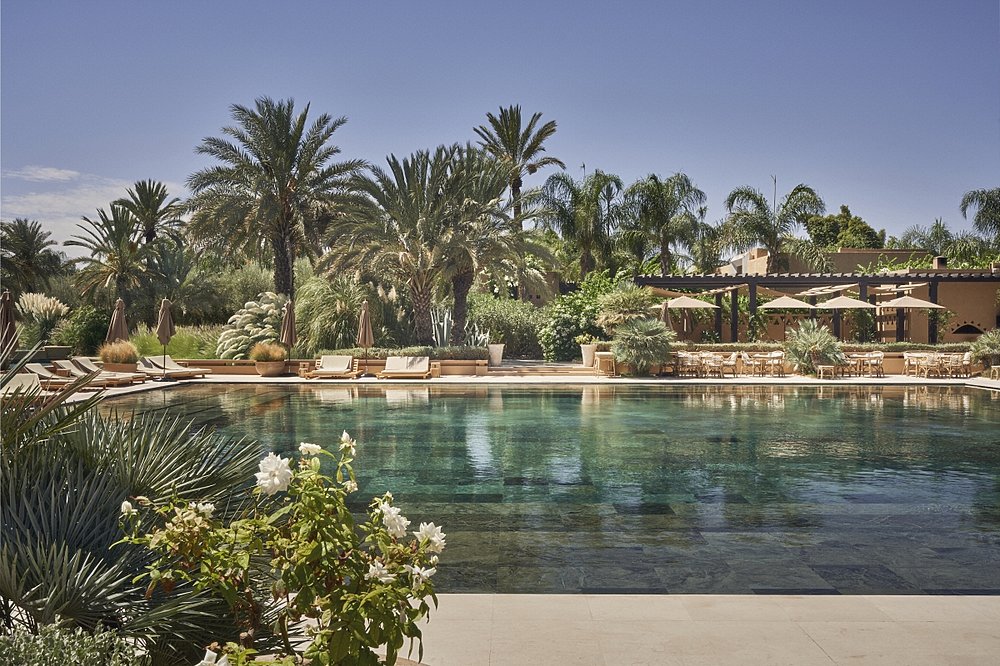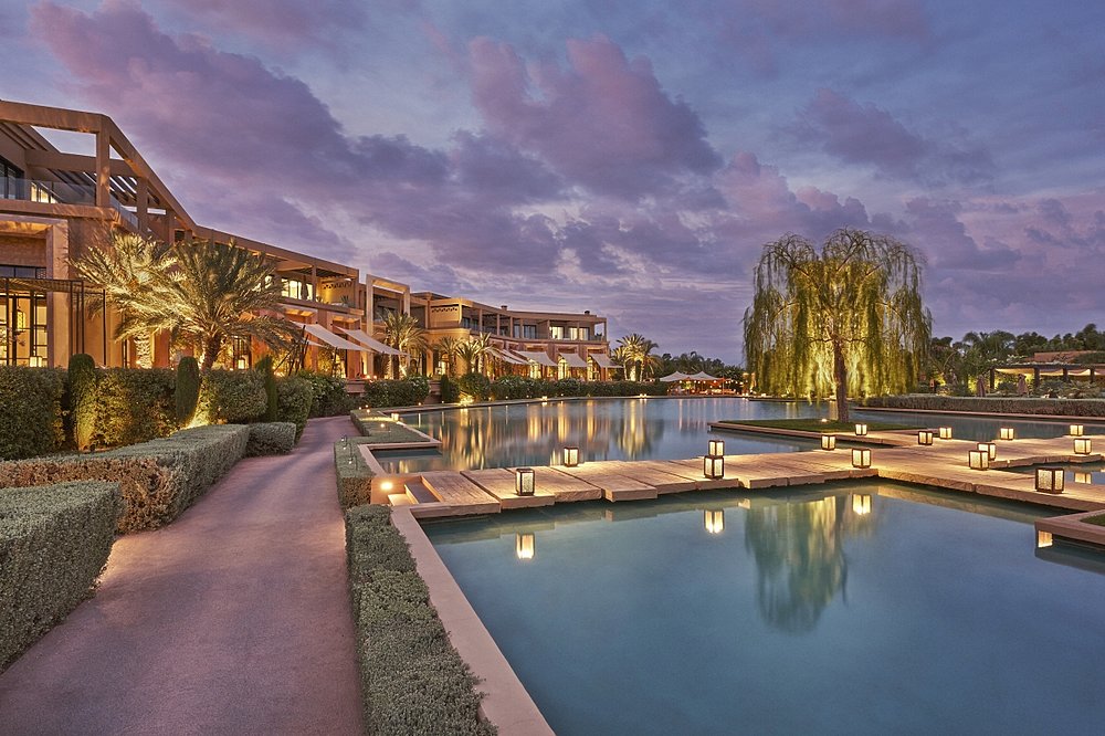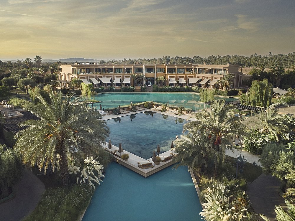 In einer malerischen Gartenanlage vor der beeindruckenden Kulisse des Atlasgebirge liegt das Mandarin Oriental Marrakech. Das Luxusresort ist eine Oase der Entspannung inmitten einer 20 Hektar großen Fläche mit Olivenhainen, Palmen und Wasserflächen. Es umfasst ausschließlich Villen und Suiten, die alle mit einer ansprechenden Mischung aus traditionellen marokkanischen Elementen und modernem Komfort gestaltet sind. Die bekannte Medina von Marrakech erreichen die Gäste in etwa 10 Fahrminuten. Der Flughafen von Marrakesch liegt nur 15 Autominuten entfernt.