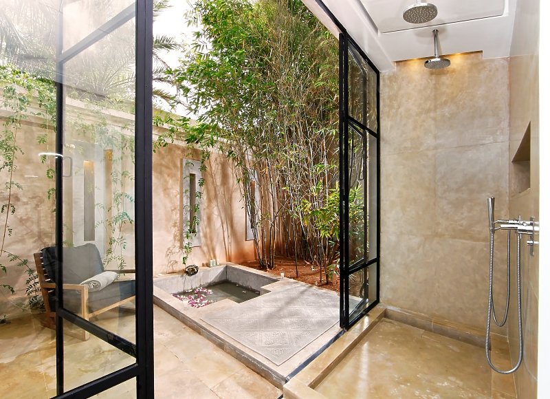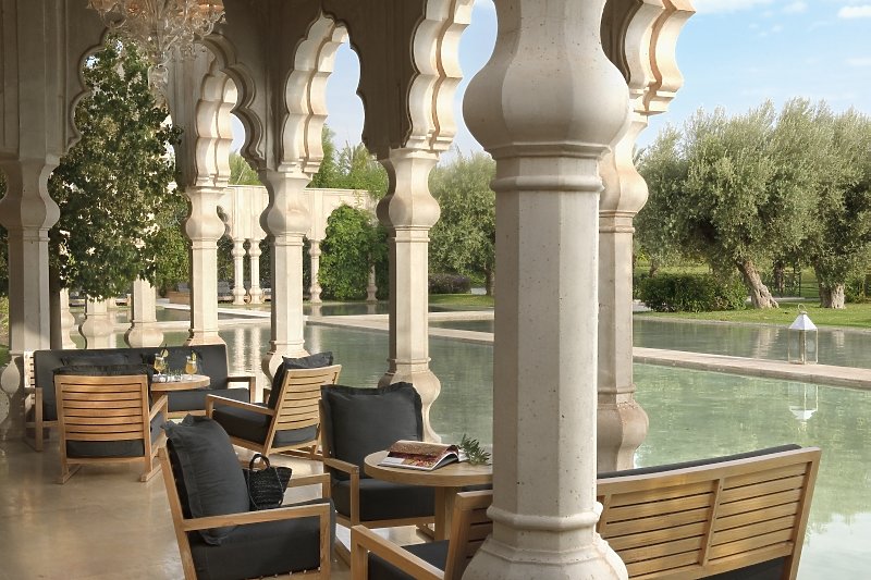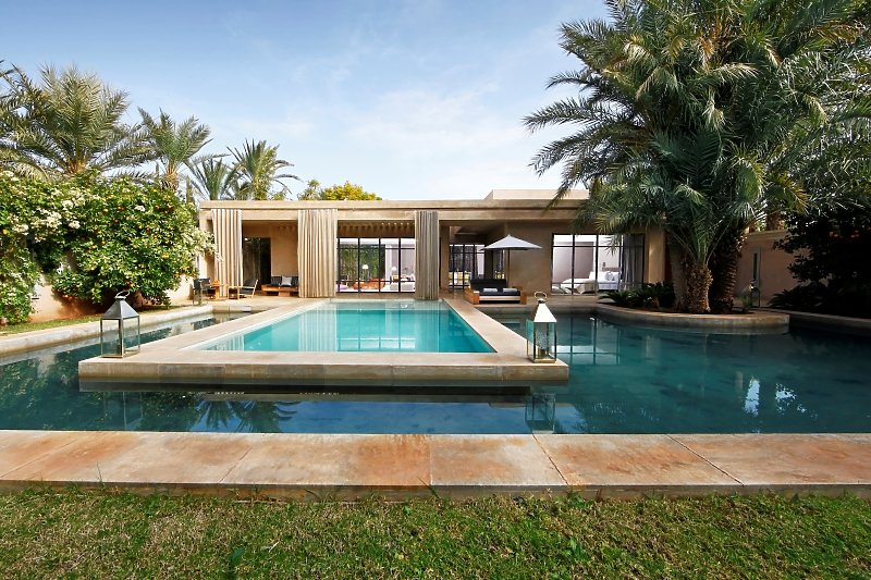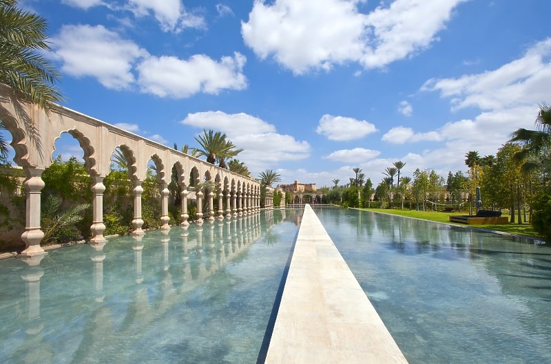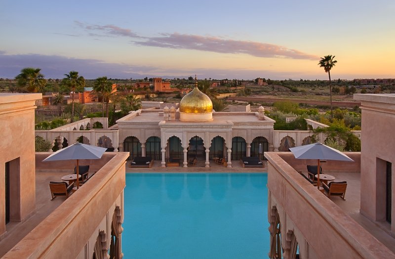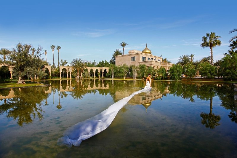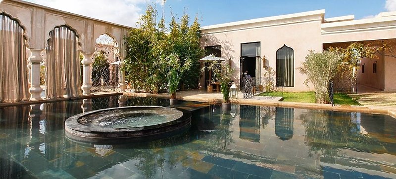 Das einzigartige Luxus Resort Palais Namaskar ist eine wahre Oase inmitten der bekannten Palmeraie. Die knapp 5 Hektar große Anlage ist großzügig angelegt, sehr grün und mit viel Wasser gestaltet. Das Atlas Gebirge thront immer im Hintergrund dieses preisgekrönten Boutique-Hotels. Der Flughafen Marrakesch ist in 22 Kilometern zu erreichen.
