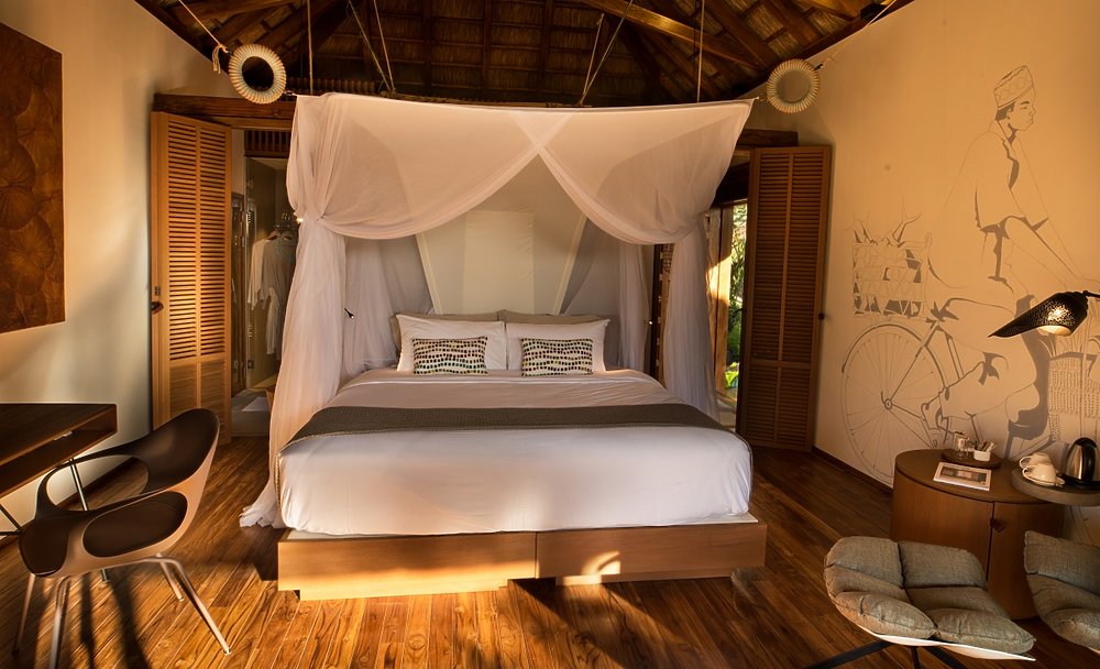 Im Zuri Zanzibar finden Sie ausreichend Platz, Ruhe und grandiose Aussichten auf das Meer. 46 stylische Bungalows, sechs Suiten und drei Villas - von 66 bis hin zu 500 Quadratmeter - stehen Ihnen auf dem paradiesisch angelegten Grundstück zur Verfügung. Die bekannten Designer Jestico+ Whiles kreierten hier einen ausgezeichneten Stilmix: Die Kombination aus afrikanischem Baustil, modernem Mobiliar und der Verwendung von lokalen Ressourcen schaffen eine bestmögliche Wohlfühlatmosphäre.