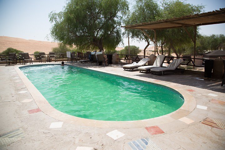 Am kleinen Swimmingpool des Camps kann man entspannen oder Wanderungen in die nähere Umgebung unternehmen. Auch Kamelausritte, Dünentouren oder Sandboarding sind möglich.