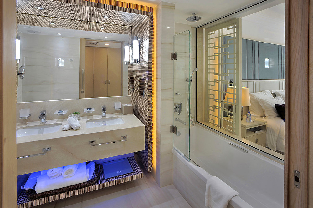 Zur Ausstattung der modernen Zimmer zählen: 43 bis 49 Zoll Flatscreen TV, Klimaanlage, USB-Steckdosen, kostenfreier WLAN-Internetzugang, Minibar, Zubereitungsmöglichkeiten für Kaffee und Tee, Nespresso Kaffeemaschine, Telefon, Safe, Bügeleisen und -brett, Doppelwaschbecken, Fön, Bademantel und Slipper.