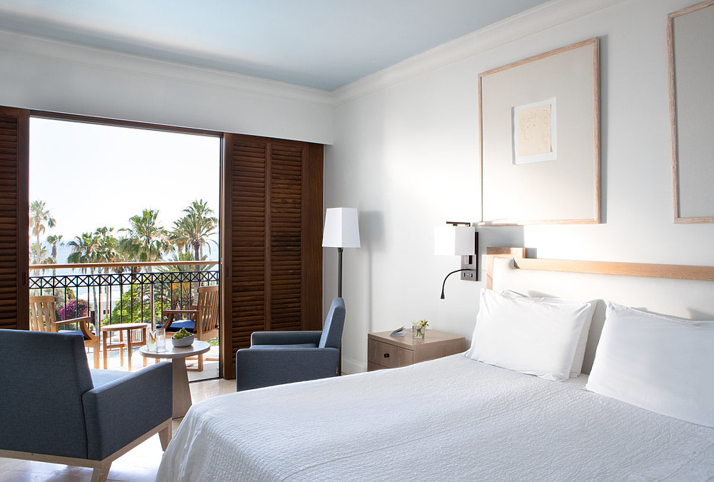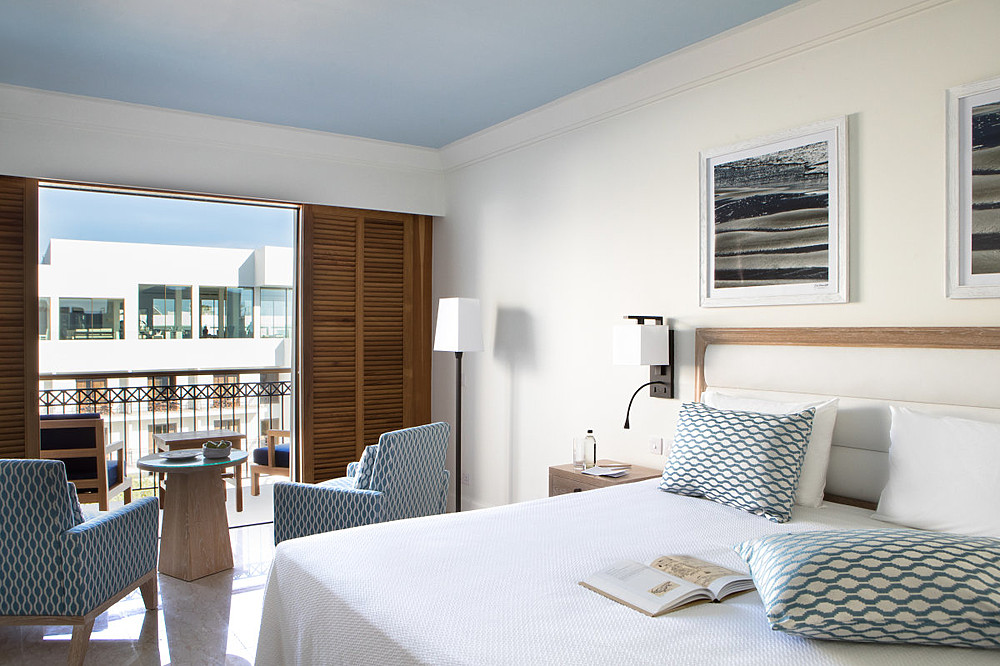 Die Sea View Zimmer verfügen neben einem Marmorboden einen Sitzbereich im Schlafzimmer. Vom Balkon aus führt der Blick direkt aufs Meer.