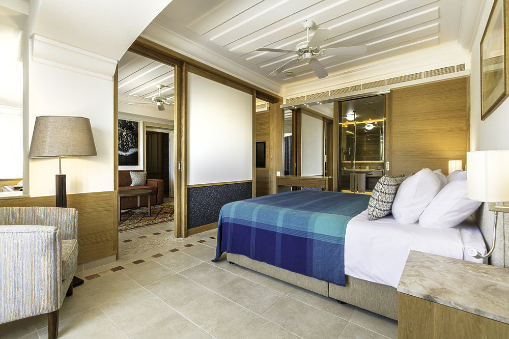 Das Columbia Beach Resort verteilt seine insgesamt nur 169 Suiten auf den West- und den Ostflügel. Alle verfügen über ein Bad mit separater Dusche, Föhn, Satelliten-TV, kostenfreier WLAN-Internetzugang, Minibar, Tee- und Kaffeekocher, Nespresso Kaffeemaschine, Safe, Telefon, Deckenventilator, Klimaanlage, Sitzecke, Balkon oder Terrasse.