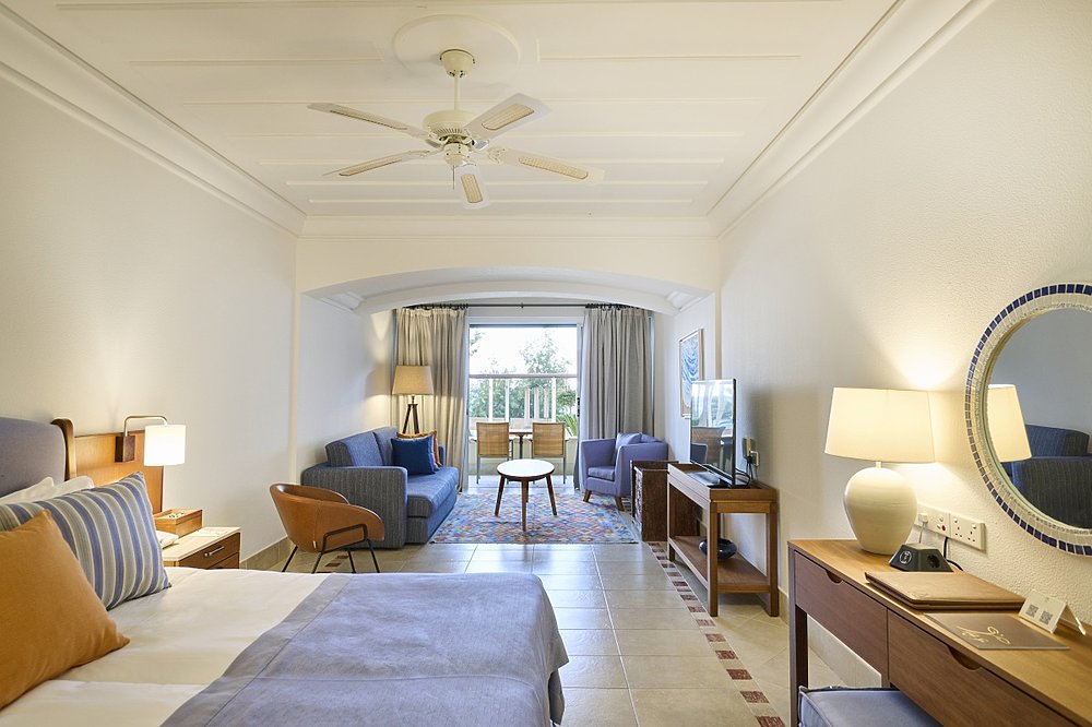 Ein Aufenthalt in jeder der 169 Suiten im Columbia Beach Resort wird zum einzigartigen Erlebnis. Die geschmackvolle Einrichtung spiegelt die Farben und die Atmosphäre Zyperns und des Mittelmeers passgenau wider und verspricht ein heimeliges Wohngefühl. Handgewebte Stoffe und elegante Holzmöbel sorgen für ein zeitloses und geschmackvolles Zimmerdesign, während Sie von Ihrem Balkon oder Ihrer Terrasse bezaubernde Blicke auf das Meer, die Hotelanlage und die Landschaft der Umgebung einfangen können.