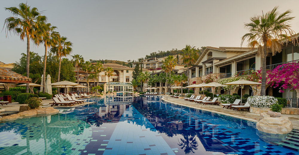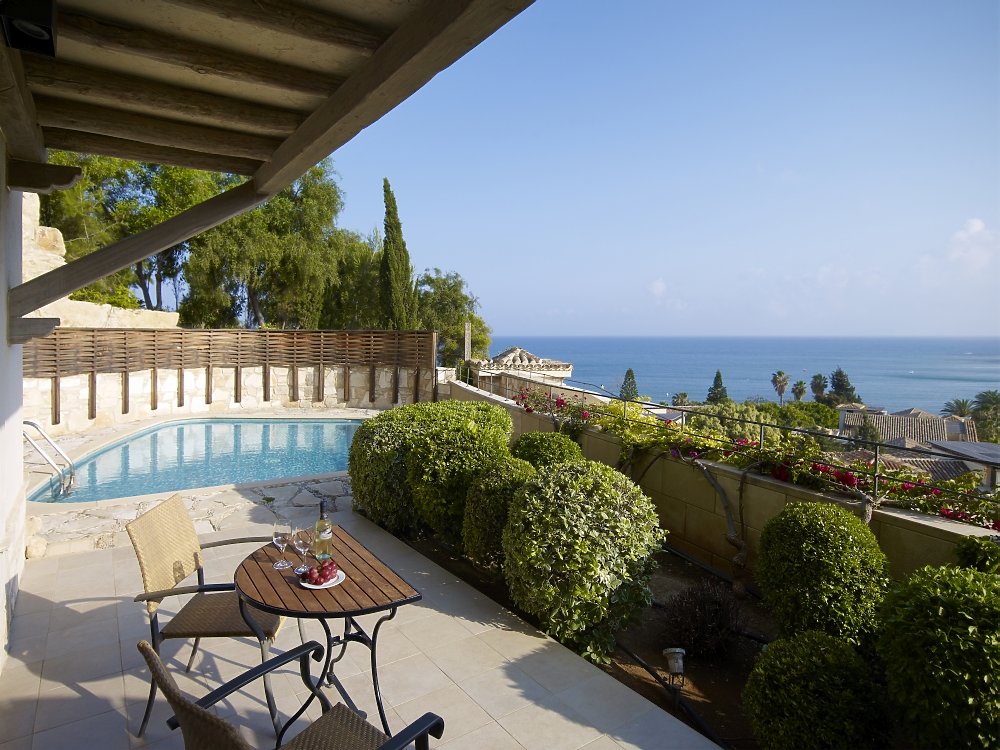 Sie wünschen sich Luxus und mediterranes Flair in einem ruhigen und eleganten Ambiente? Dann wird Ihnen das Columbia Beach Resort auf Zypern beste Urlaubstage bescheren. Hier finden Sie eine Hotelanlage vor, die Ihnen nicht nur Eleganz und Komfort vorlebt, sondern auch noch im Stile eines zypriotischen Dorfes erbaut ist. Rotbraune Dachziegel, herrschaftliche Torbögen und klassische Fensterläden bestimmen die Gebäude des Luxusresorts. Zusammen mit dem 80 Meter langen Lagunenpool, der grünen und bunt blühenden Gartenanlage präsentiert sich das Spitzenhotel voller Harmonie und Einklang direkt in der Bucht von Pissouri. In antike Zeiten zurückversetzt fühlen Sie sich im preisgekrönten Hébe Spa, das Sie mit natürlichen und innovativen Anwendungen verwöhnt, während die gemütlichen und stilvollen Restaurants zu vielfältigen Genüssen einladen.