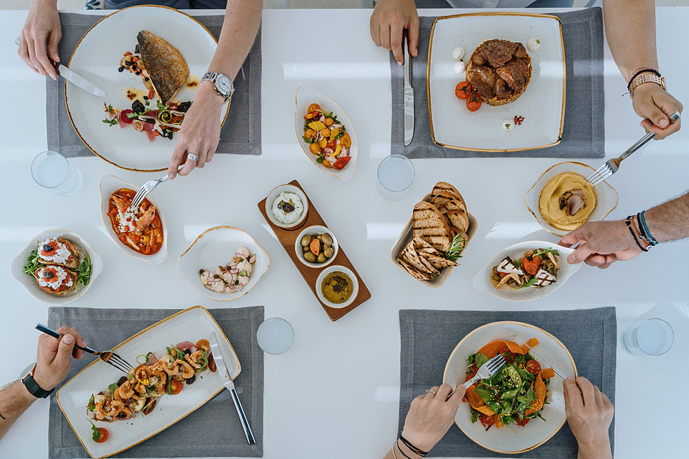• Filoxenia: Hauptrestaurant mit Frühstück, Mittagessen und Abendessen in Buffetform, griechische Delikatessen, Live-Cooking, Pizza, Pasta, vegetarische und glutenfreie Speisen
