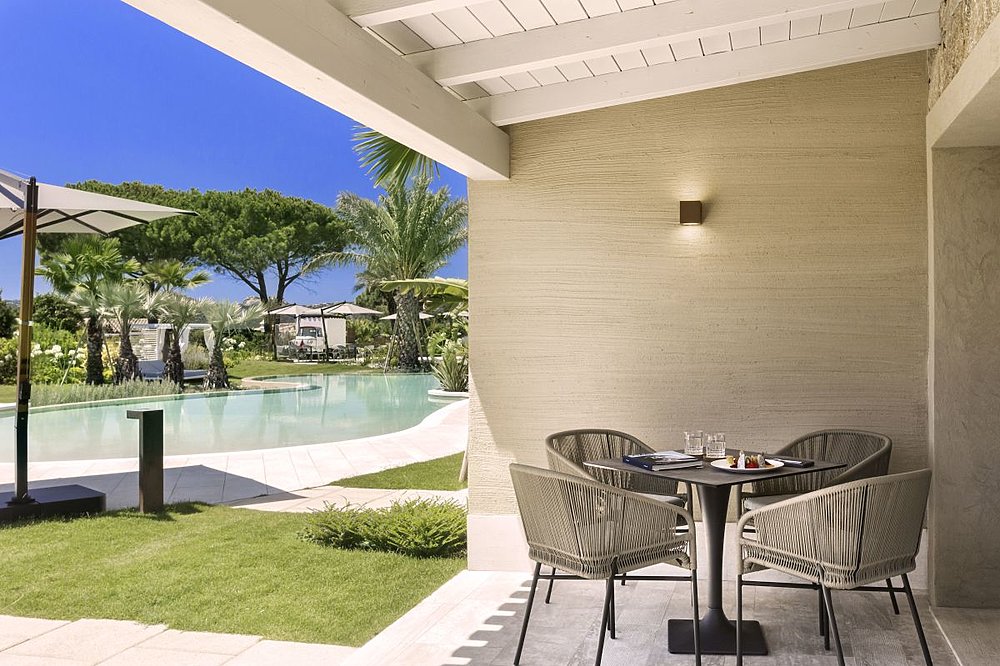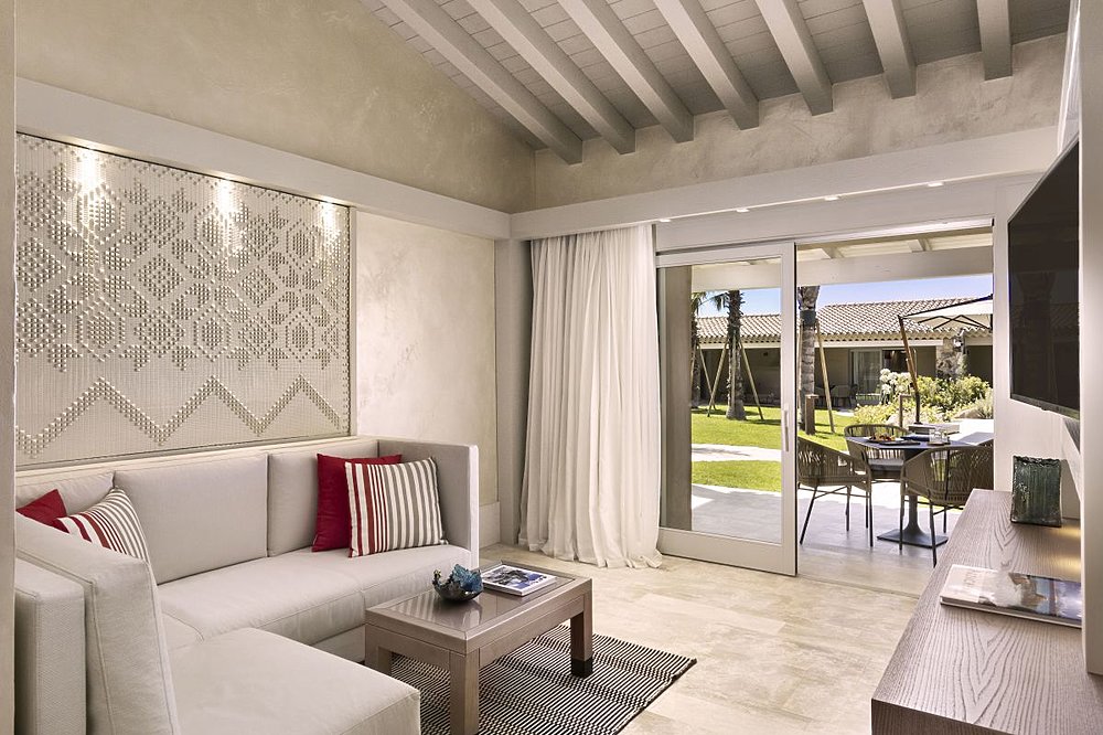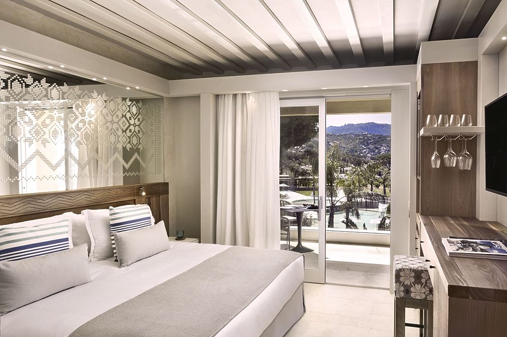 Ob im Garten, am Lagunenpool oder mit Blick auf das türkisblau funkelnde Mittelmeer – die 75 Zimmer und Suiten im 7Pines Resort Sardinia verteilen sich auf der gesamten Hotelanlage. Das Interieur zeichnet sich durch die Verwendung von natürlichen Materialien aus. Sardische Keramik, Holzmöbel, Leinenstoffe und inseltypische Farbtöne von türkis bis orangerot bestimmen das Design der Räumlichkeiten. Hohe Entspannung versprechen die Zimmer und Suiten mit Dachterrasse und Sonnenliegen.