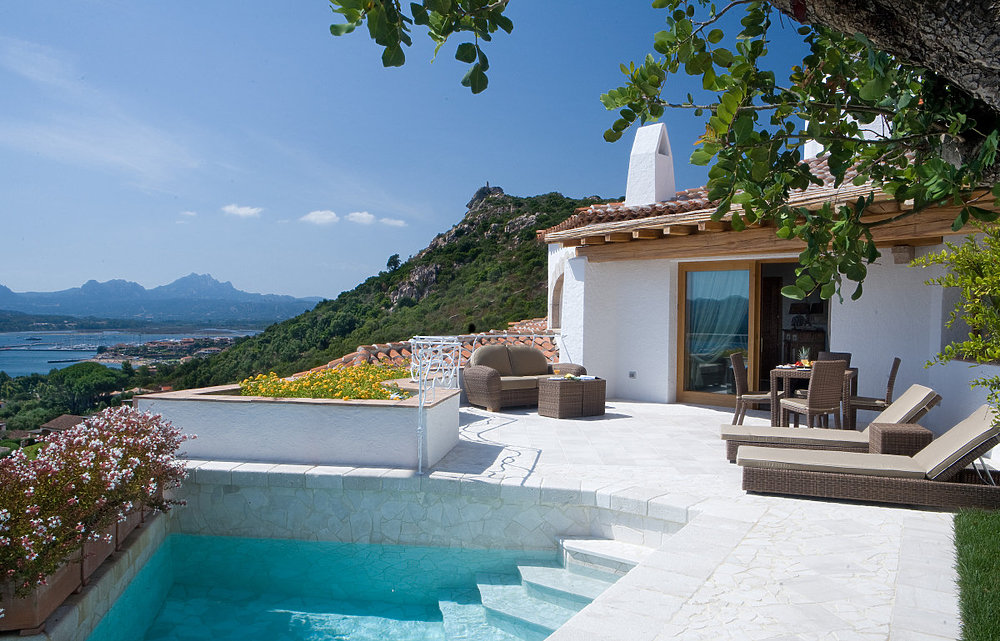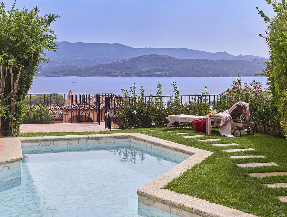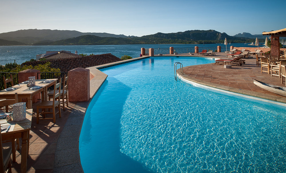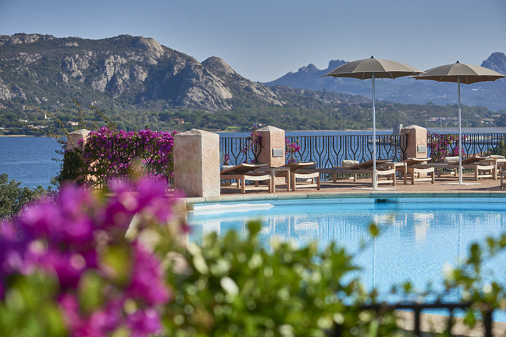 Der Meerwasser-Pool des Aethos Sardinia lädt nicht nur zu einer Erfrischung ein, sondern von hier aus eröffnet sich auch ein fantastischer Blick auf das Meer und die Bucht von Cannigione.