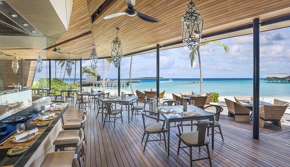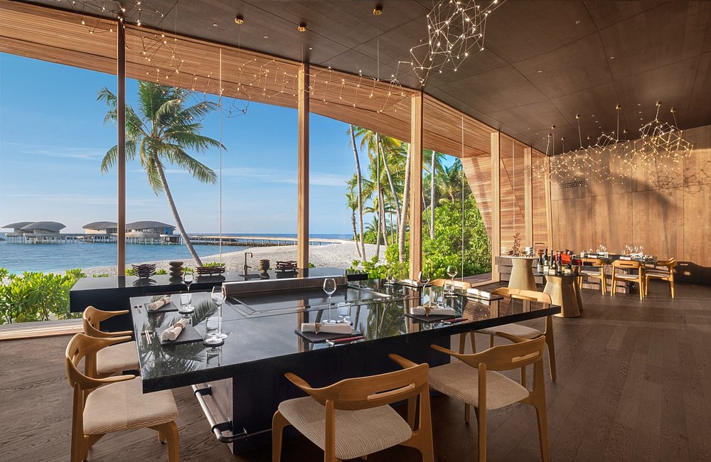 Global Gastronomy: Unter diesem Schlagwort versammeln sich die sechs Restaurants und Bars im The St.Regis Maldives. Vom Signature-Drink „Island Mary“ bis zum unterirdischen Weinkeller können Sie auf der Insel auf eine kulinarische Weltreise gehen. Essen unter dem Sternenhimmel, ein Strandpicknick oder ein Menü im Hotelgarten: Sehr zu empfehlen sind die privaten Dinner-Erlebnisse.