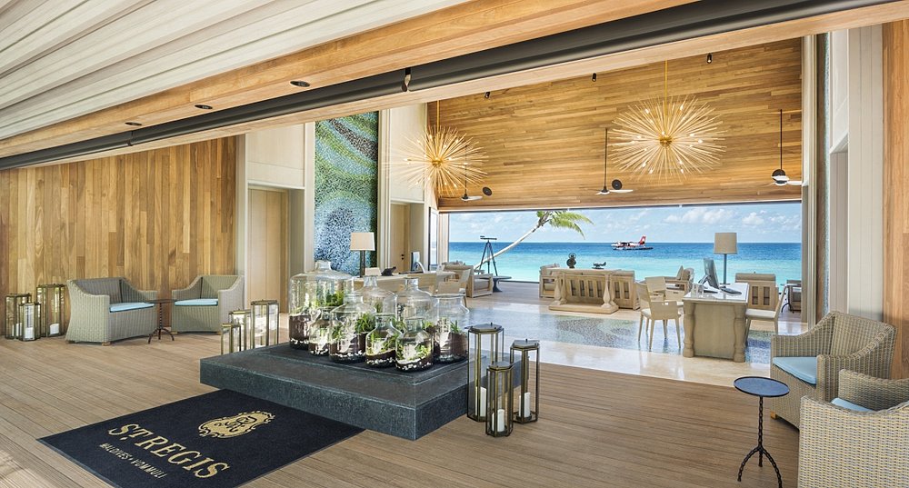 The St.Regis Maldives Vommuli Resort liegt im Dhaalu-Atoll, rund 45 Minuten per Wasserflugzeug vom Flughafen Male entfernt.