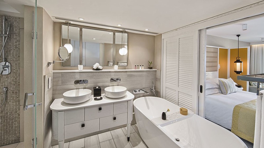Alle Wohnräume verfügen über eine möblierte Terrasse bzw. Balkon mit Wohnbereich, Klimaanlage, Badezimmer mit Badewanne, separater Dusche, Klimaanlage, Safe, Minibar, kostenfreie Tee- und Kaffeezubereitungsmöglichkeiten in den Prestige Zimmern sowie eine Nespressomaschine in der Junior Suiten Beachfront, Deluxe Suite sowie in den Villen. Außerdem bieten alle Zimmer einen Föhn, Sat TV und Apple Mac Mini Entertainment System. Die Villen bieten ausserdem einen eigenen "Villa Master", der sich um alle kleinen und großen Wünsche der Villengäste kümmert.