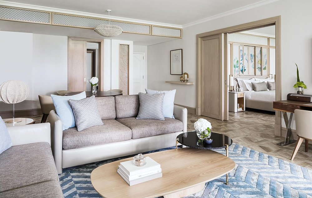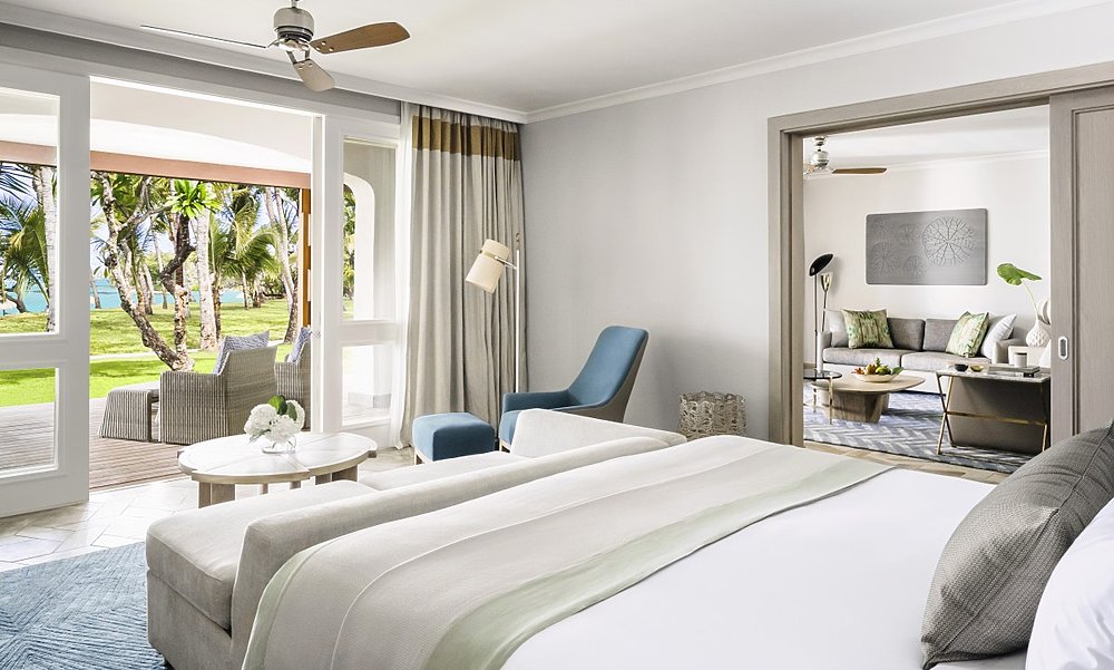 Die eleganten Suiten bieten Blick auf den Indischen Ozean und sind nur wenige Schritte vom weißen Sandstrand entfernt. Die Suiten Befinden sich im Erdgeschoss und verfügen über eine Terrasse und Garten. Die zeitlos und klassisch eingerichteten Suiten verfügen über einen separaten Wohnbereich mit Essecke und einem Marmorbad mit separater Wasserfall-Dusche und Badewanne. Das Sofa kann zu einem zusätzlichen Extrabett umgebaut werden.