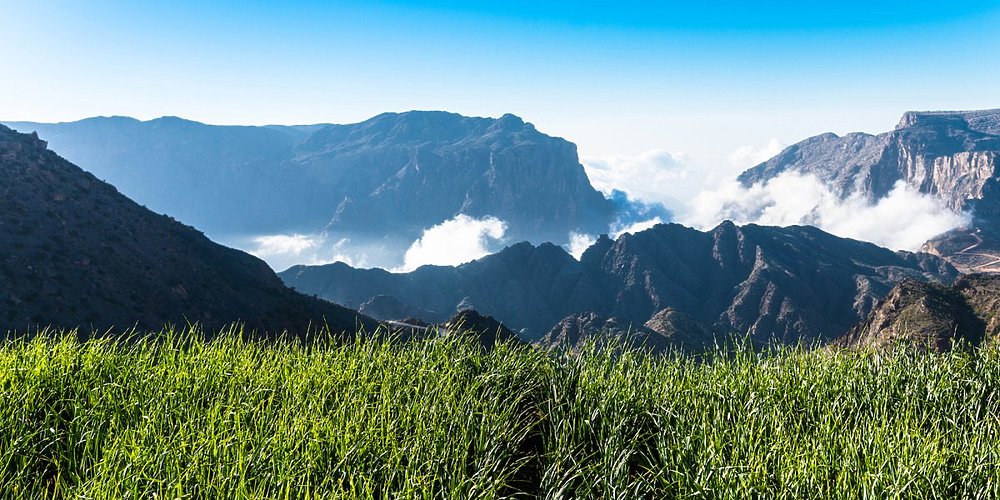 Am Morgen verlassen Sie Muscat und fahren in das beschauliche, ca. 400 Jahre alte Bergdorf Al Hamra Al Abriyeen mit traditionellen Behausungen aus Lehm und Stein. Hier sehen Sie, wie das Wasser aus den Bergen über die Falaj (Bewässerungskanäle) in die tiefer im Land liegenden Dörfer geleitet wird. Auf dem Weg in Richtung Jebel Shams legen Sie einen Zwischenstopp beim Dorf Wadi Ghul ein und genießen von dort beeindruckende Ausblicke ins Jebel Shams Gebirge. Im Anschluss erreichen Sie Nizwa, berühmt für sein Round Tower Fort aus dem 17. Jahrhundert und den traditionellen Souq mit Ornament-Silberschmuck und handgefertigten Dolchen.