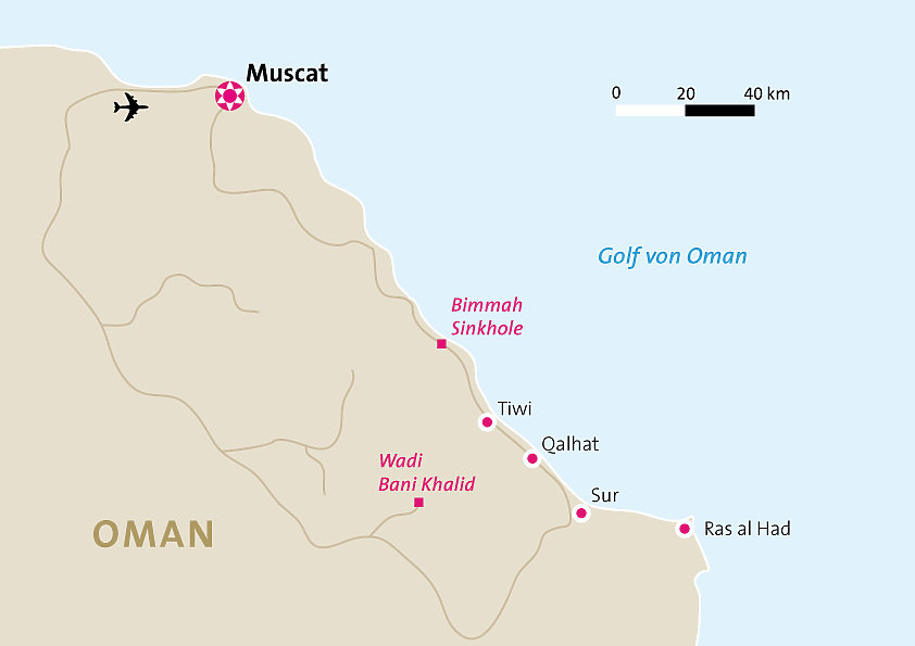 Tag 1 Muscat - Ras Al Had - Sur (ca. 330 Kilometer)