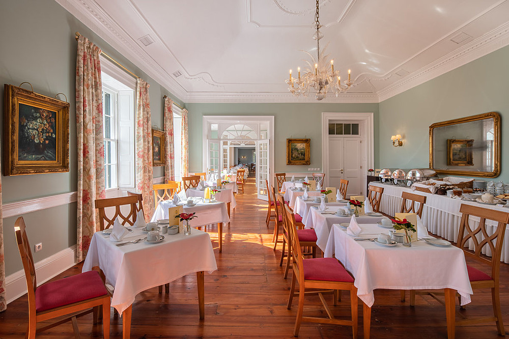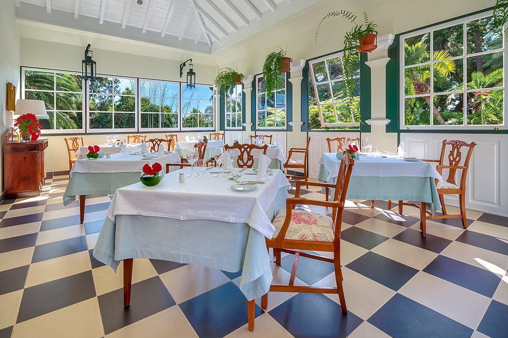 • Jade Room: luftiger Frühstücksraum mit Veranda und Sitzmöglichkeiten im Garten