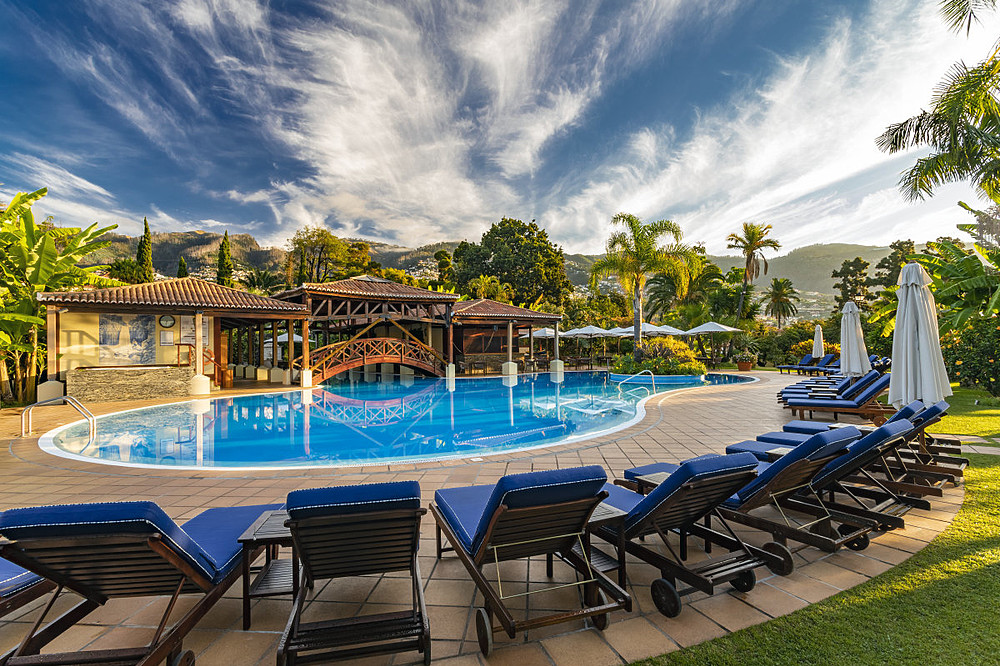 An der Südküste Madeiras begrüßt das geschichtsträchtige Traditionshaus Quinta Jardins do Largo seine Gäste mit inseltypischer Architektur, subtropischem Garten und uneingeschränktem Komfort. Bei einer jüngeren Renovierung wurde besonderer Wert auf die Erhaltung der ursprünglichen Bauform und antiken Innenausstattung gelegt. Unterstrichen wird das gediegene Hotel-Ambiente durch die ansprechende Lage in den Hügeln der belebten Inselhauptstadt Funchal. Diese richtet den Blick auf den türkisblauen Atlantik und garantiert gleichzeitig ein abwechslungsreiches Freizeitprogramm. Beispielsweise sind der Hafen und die historische Altstadt mit dem Auto in weniger als zehn Minuten zu erreichen. Die Organisation spannender Besichtigungen, darunter die der Monte Palace Gärten oder des Santa Clara Klosters, wird auf Wunsch durch das engagierte Hotelpersonal unterstützt. Unkompliziert gestaltet sich auch der Transfer zum Flughafen Funchal, der etwa zwanzig Minuten benötigt.