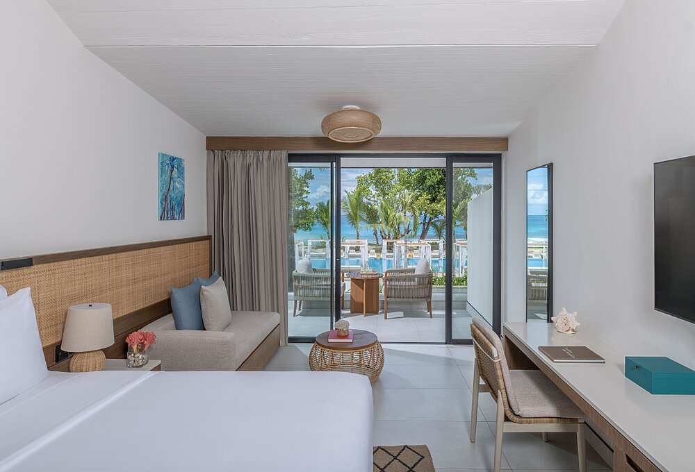 Der neue Anstrich lässt sich gut in den Wohneinheiten des Avani+ Barbarons beobachten: Mit zwölf neuen Suiten zählen nun insgesamt 192 Zimmer und Suiten zum Luxushotel auf den Seychellen. Ganz frisch sind die Wohnräume in Richtung der Lagune, die zukünftig als Swim-Up Room Zugang zu einem Gemeinschaftspool besitzen.