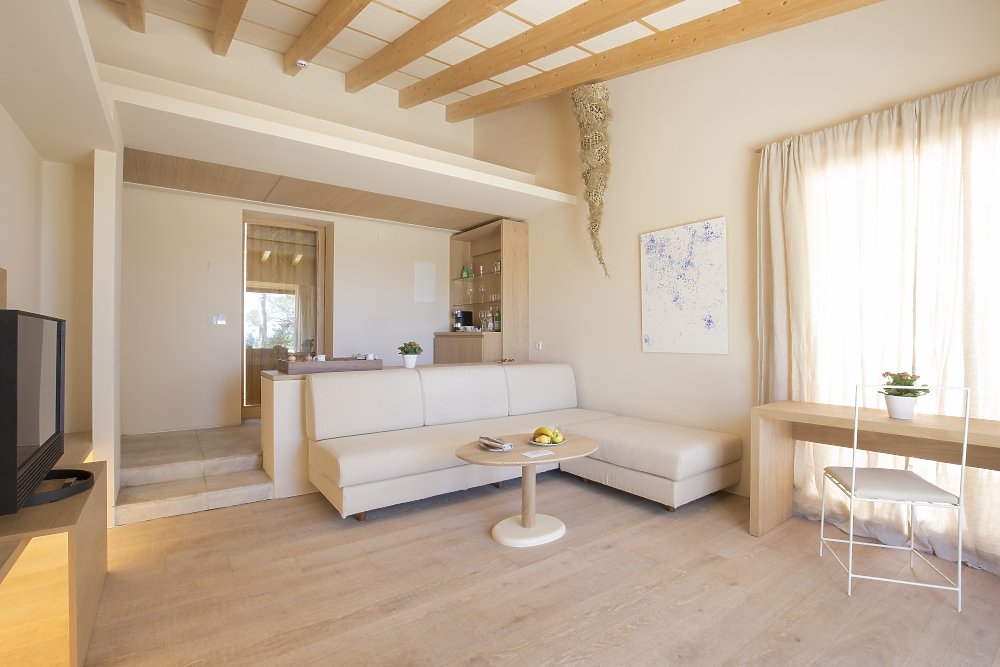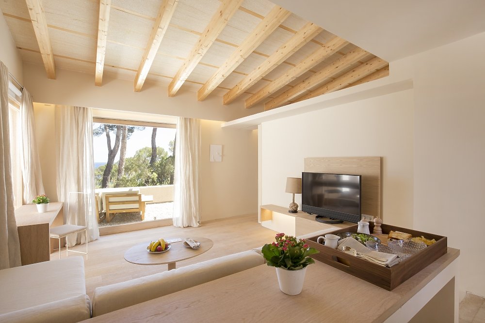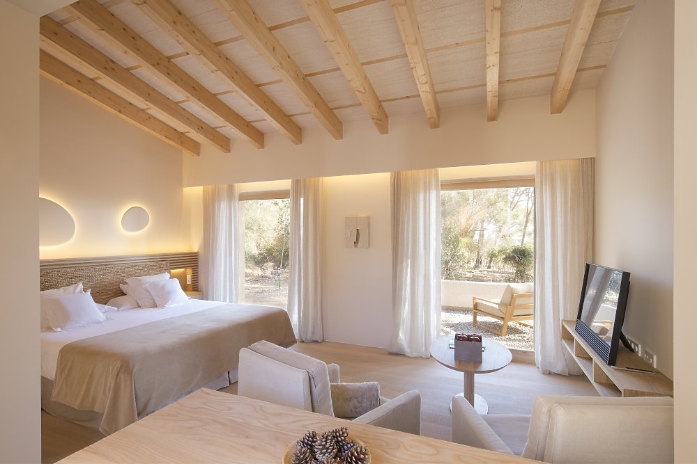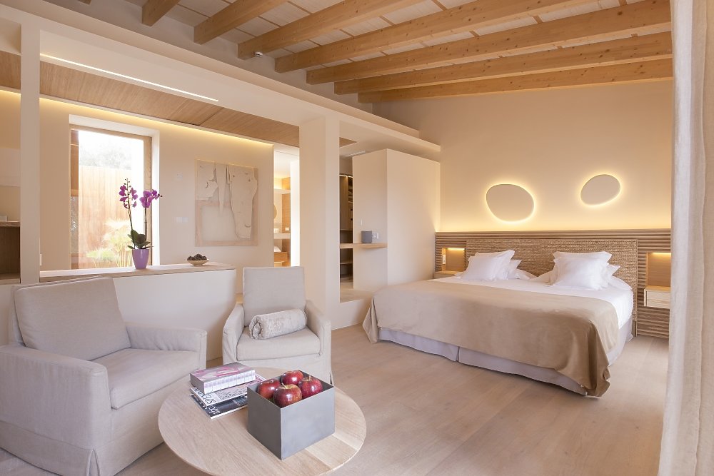 30 in hellen Naturtönen gestaltete Suiten verteilen sich auf dem großzügigen Gelände des Pleta de Mar. Jeder Gast bewohnt seine eigene Suite mit bodentiefen Fenstern für einen wundervollen Blick in die umliegende Natur. Für den besonderen Komfort sorgen eine separate Regendusche sowie eine freistehende Badewanne und einzigartig auf Mallorca, eine Außendusche. Die private Terrasse ist mit einem bequemen Daybed ausgestattet. Einige der Suiten verfügen zudem über einen Außen-Whirlpool oder einen eigenen Pool. Kostenfreier WLAN-Internetzugang im kompletten Hotel.