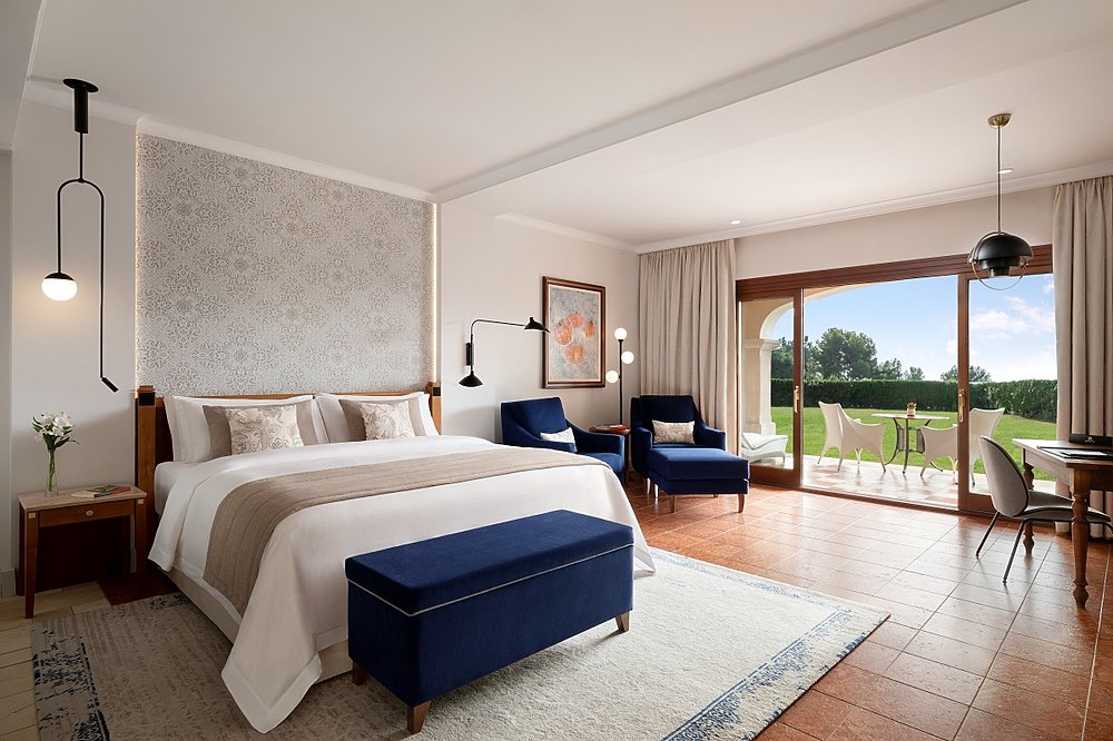 Die 125 elegant ausgestatteten Gästezimmer und Suiten des The St. Regis Mardavall Mallorca Resort, die beeindruckende Ausblicke auf das schöne Mittelmeer oder die schön gestalteten Gärten bieten, sind elegant und großzügig gestaltet.