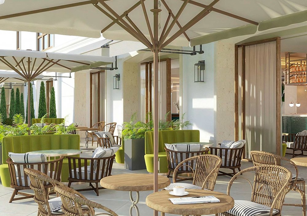 Buffet Restaurant: Frühstückrestaurant in hellem, freundlichen Design und mit schickem Innen- und Außenbereich