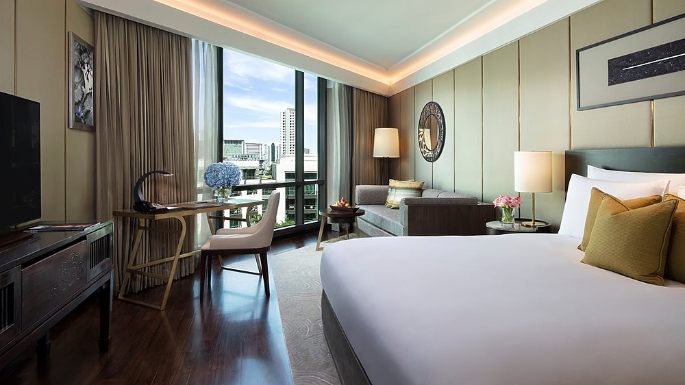 Die 401 luxuriösen und großzügig geschnittenen Zimmer und Suiten verteilen sich auf zwei Flügel, den Garden Wing und Royal Wing. Alle Zimmer bieten einen schönen Blick auf den innen liegenden Garten und sind im modern-luxuriösen Thai-Stil gestaltet. Zur Ausstattung gehören unter anderem: Klimaanlage, Safe, Minibar, Tee- und Kaffeekocher, LED TV mit wireless Tastatur für kostenlosen Internetzugang, Telefon, Schreibtisch, Sitzecke und teilweise Balkon. Das Badezimmer ist durch eine Glaswand abgetrennt und verfügt über Föhn, Badewanne, Dusche sowie Bademantel.