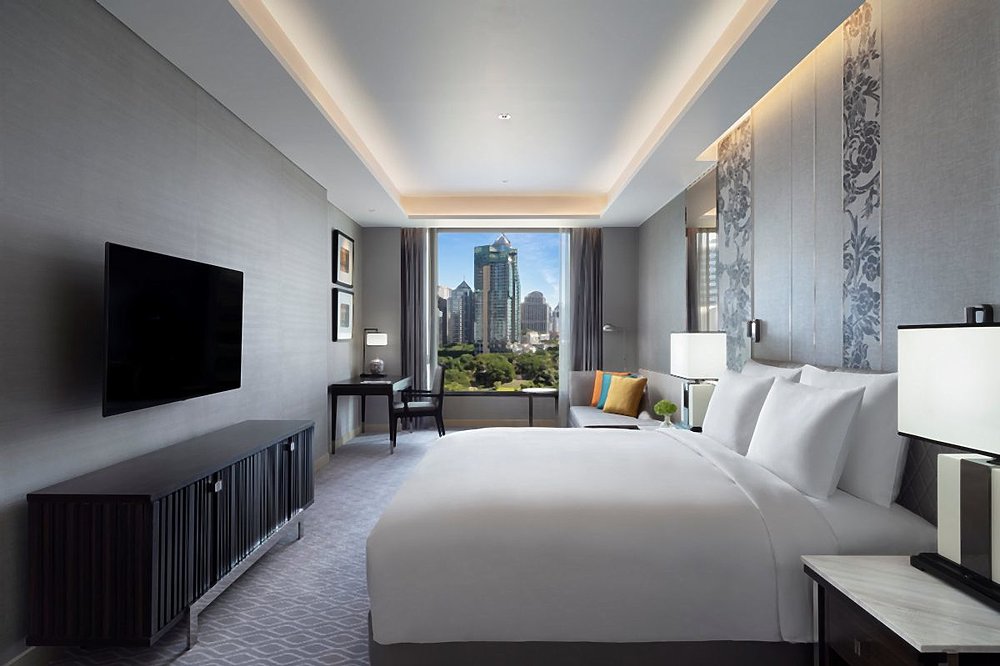 Die insgesamt 274 Zimmer und Suiten im Sindhorn Kempinski Hotel Bangkok zählen zu den größten und geräumigsten der Stadt. Bereits in der Einstiegskategorie stehen Ihnen 66 Quadratmeter zur Verfügung, in allen Zimmern sind Balkone vorhanden. Modernes thailändisches Dekor trifft auf gemütliches Mobiliar und Marmorelemente in den Badezimmern. Einige Zimmerkategorien sind mit einer Küchenzeile ausgestattet.