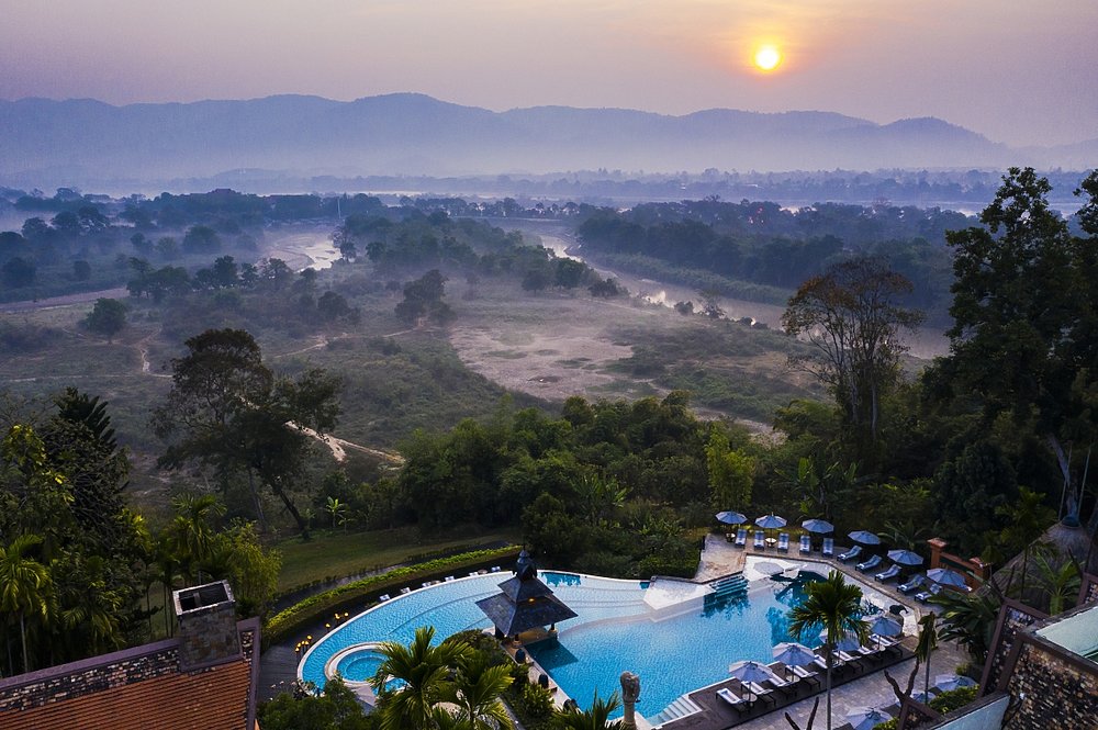 Das Anantara Golden Triangle Elephant Camp & Resort liegt im Herzen des Goldenen Dreiecks auf einem Gebirgskamm. Im Norden Thailands treffen hier zwei Flüsse und drei Länder (Thailand, Myanmar und Laos) aufeinander. Der Flughafen Chiang Rai ist etwa 60 Kilometer entfernt, der Transfer benötigt etwa eine Stunde.