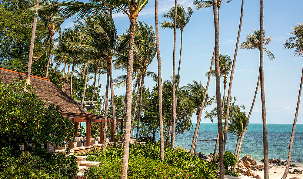 Das Four Seasons Resort Koh Samui befindet sich im äußersten Nordwesten der Insel an einer schmalen Strandbucht, um die sich die Villen in Hanglage gruppieren. Der Transfer vom Flughafen Samui zum Luxushotel benötigt etwa 30 Minuten. Zum Nathon Pier, wo Fähren zum Festland und zur Insel Koh Phangan ablegen, sind es knapp 10 Minuten.