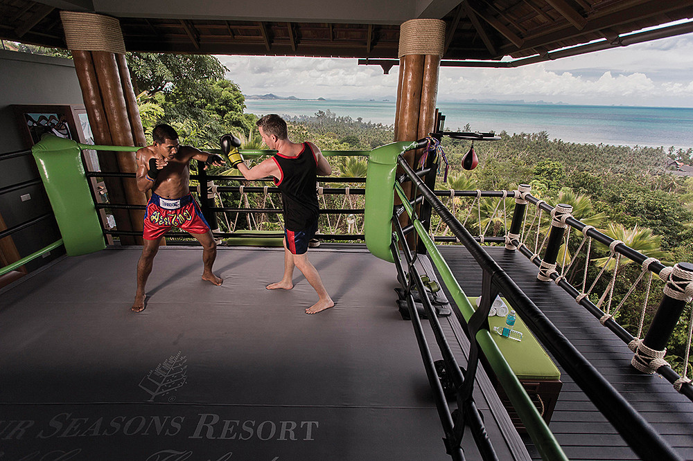 Aktiven Gästen stehen im "Four Seasons" ein Fitness-Center, zwei Tennisplätze sowie ein Swimmingpool zur Verfügung. Ergänzt wird das sportliche Angebot von einer Auswahl an Kursen, die neben Tennisunterricht auch Yoga und Thai-Chi beinhaltet. Das luxuriöse Spa beherbergt fünf Anwendungsräume in exotischer Umgebung und bietet eine Auswahl an wohltuenden Anwendungen. Auch am Strand sind Massagen bei angenehmen Meeresrauschen möglich.
